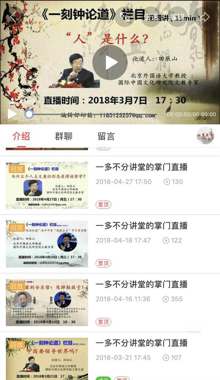 2)开通手机端线上直播平台:《一多不分》直播讲堂(15集),《一刻钟论道》(15集)直播平台。